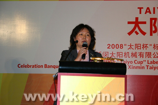 截止到9月30日,2008“太陽(yáng)杯”標簽印制大獎賽組委會(huì )共收到來(lái)自84家標簽印制企業(yè)的323份參賽作品。其中,化妝品類(lèi)作品34件,醫藥類(lèi)作品24件,日(家)化類(lèi)作品36件,化工類(lèi)作品28件,食品飲料/酒類(lèi)品103件,電子標簽類(lèi)作品37件,其他類(lèi)作品61件。最終57件作品入圍。國家新聞出版總署印刷發(fā)行管理司司長(cháng)王巖鑌,中國印刷及設備器材工業(yè)協(xié)會(huì )理常務(wù)副理事長(cháng)王德茂,上海新聞出版局副局長(cháng)李新立,中國印刷技術(shù)協(xié)會(huì )副理事長(cháng)兼秘書(shū)長(cháng)張雙儒,北京印刷學(xué)院院長(cháng)曲德森,世界印刷大會(huì )及傳播論壇/南非印刷工業(yè)者聯(lián)合會(huì )主席Chris Sykes先生,OUTPUTLINKS主席Andy Plata先生和副主席Julie Plata女士,奢侈品包裝展代表Arnaud CASTELLON先生,日本株式會(huì )社太陽(yáng)機械制作所會(huì )長(cháng)五十嵐先生,太陽(yáng)機械株式會(huì )社社長(cháng)栗井博先生等,還有我們太陽(yáng)杯標簽印制大獎主辦三方的領(lǐng)導,他們是中國印刷科學(xué)技術(shù)研究所所長(cháng)陳彥、上海市印刷行業(yè)協(xié)會(huì )理事長(cháng)印德明,上海新閔太陽(yáng)機械有限公司董事總經(jīng)理祁和亮都作為本次頒獎晚宴的嘉賓出席。